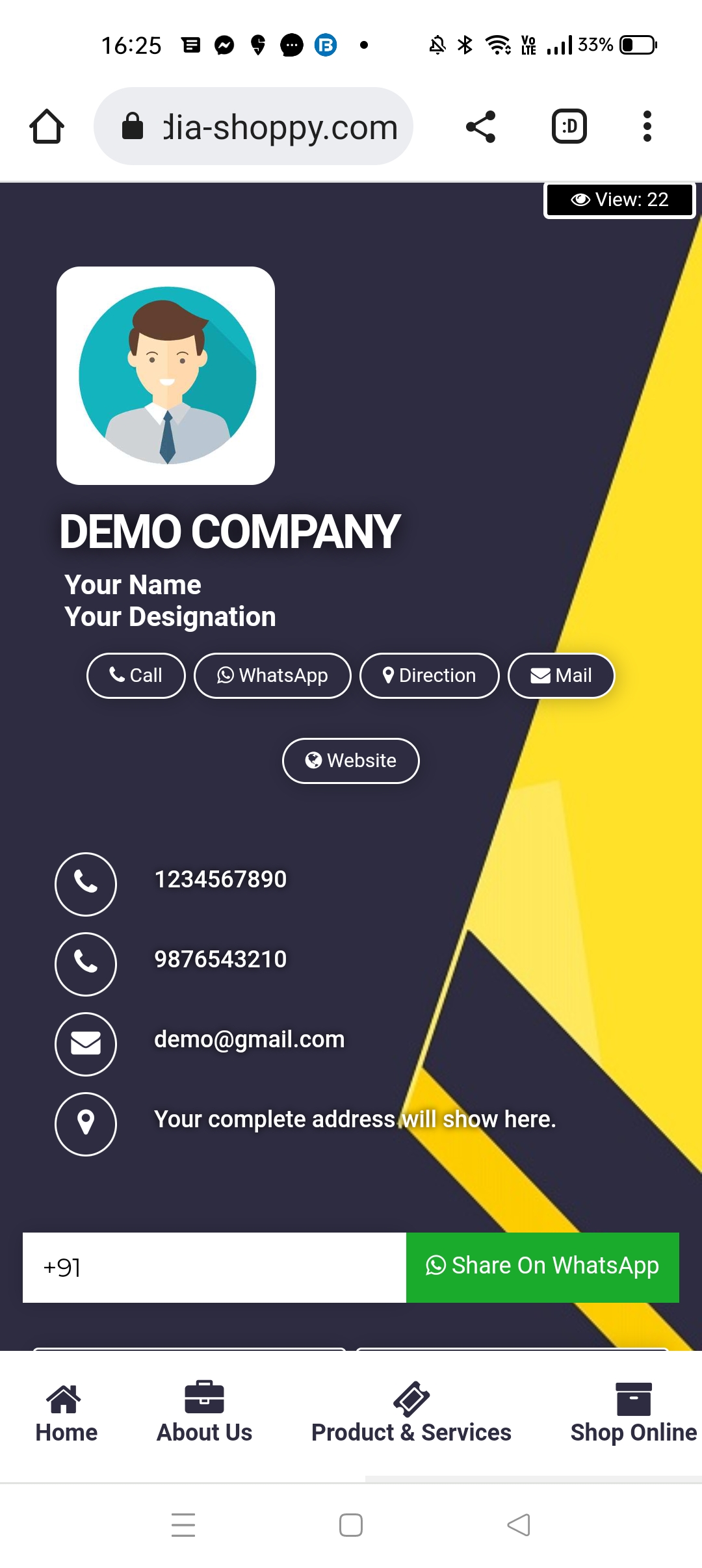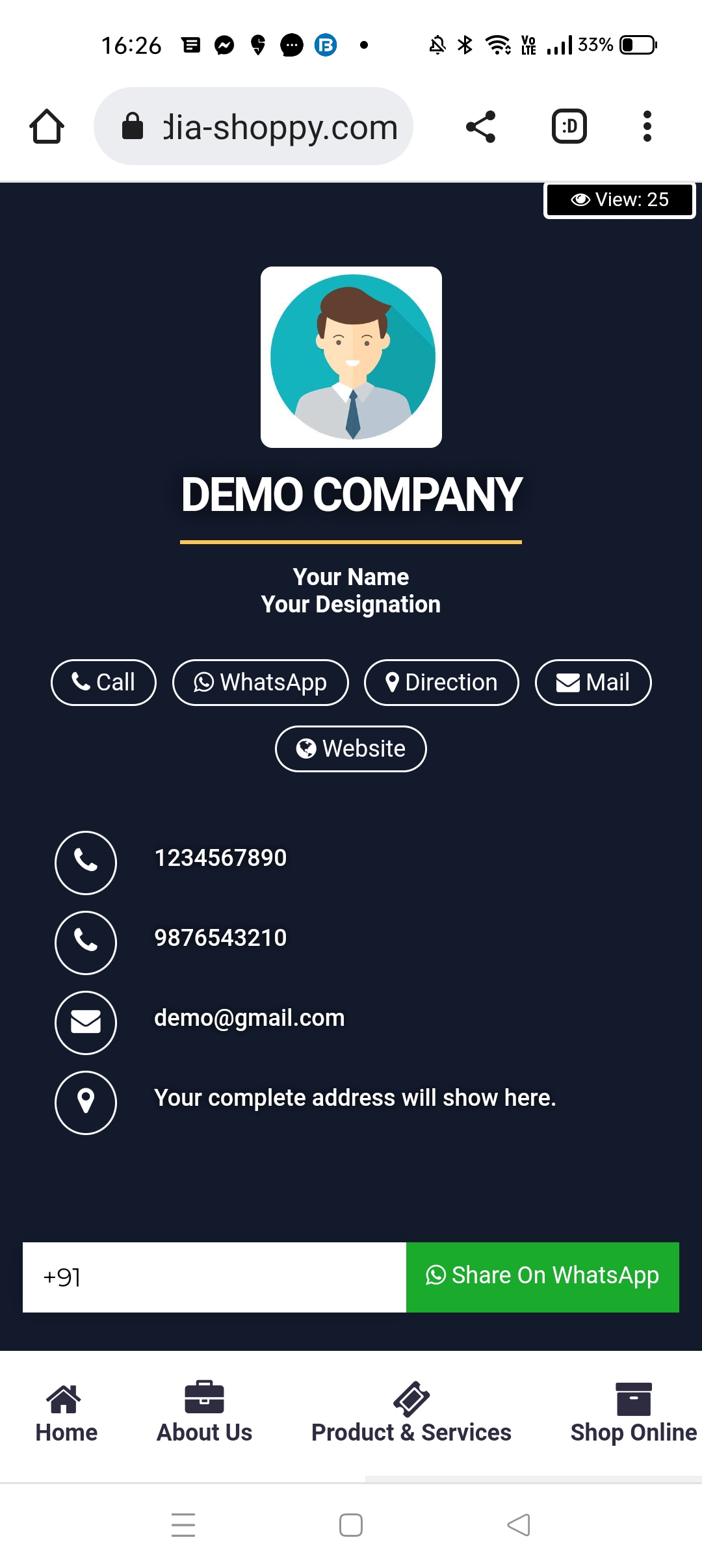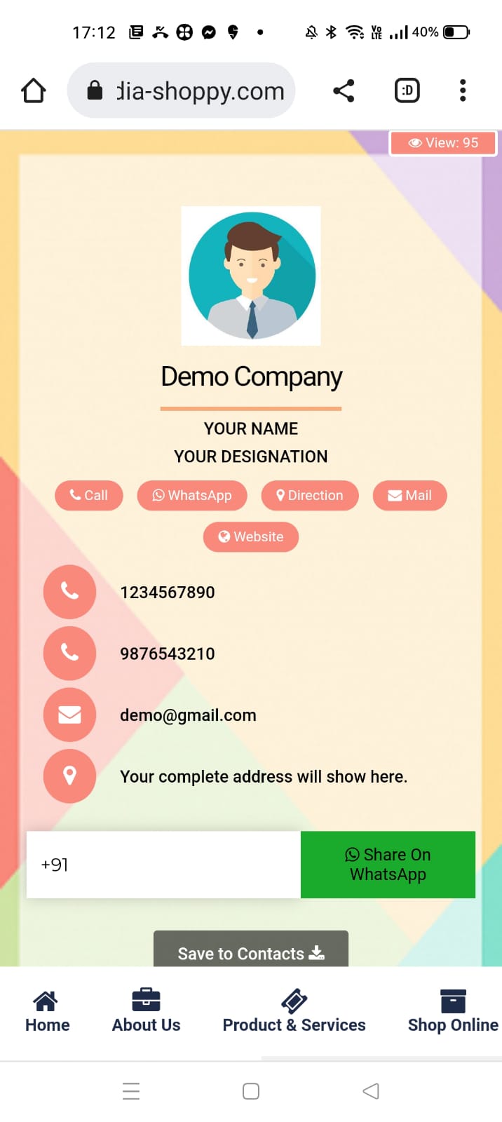 The shortest route to your customers is through their mobile phones. Utilize our share options and take your brand viral by sharing your ApnaDigicard with your clients and friends.